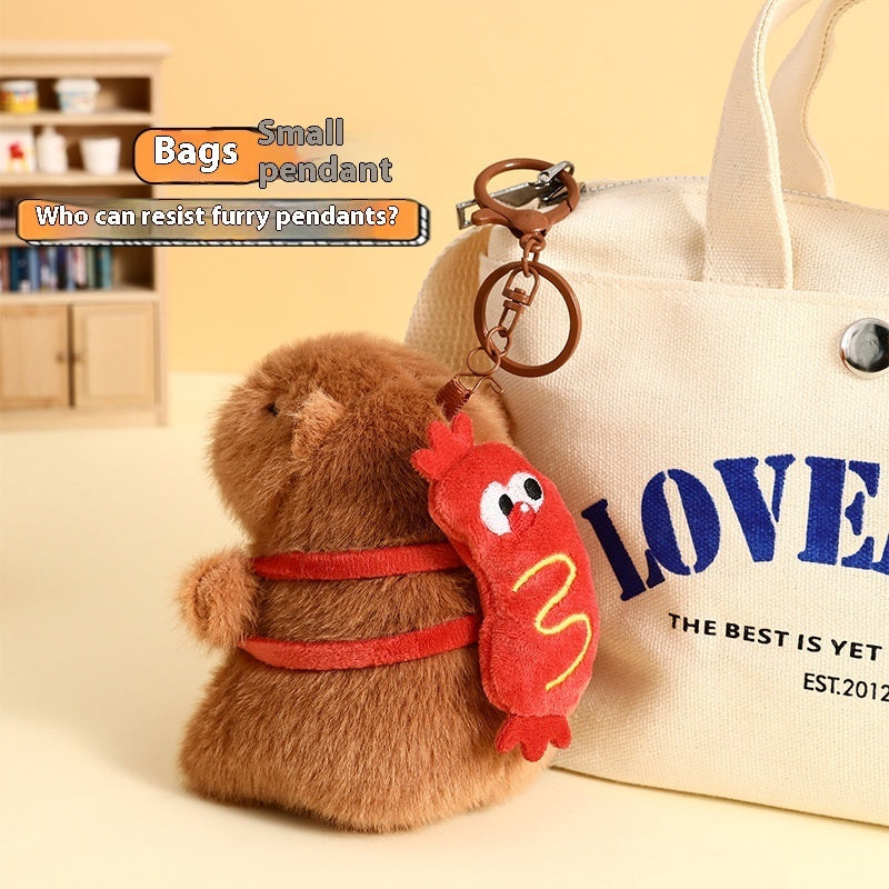 Cute Cartoon Plush Foodie Small Capybara Creative Car Key Ring