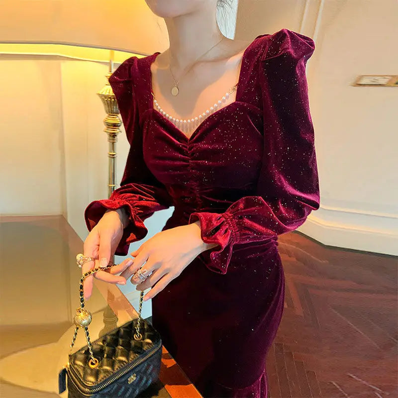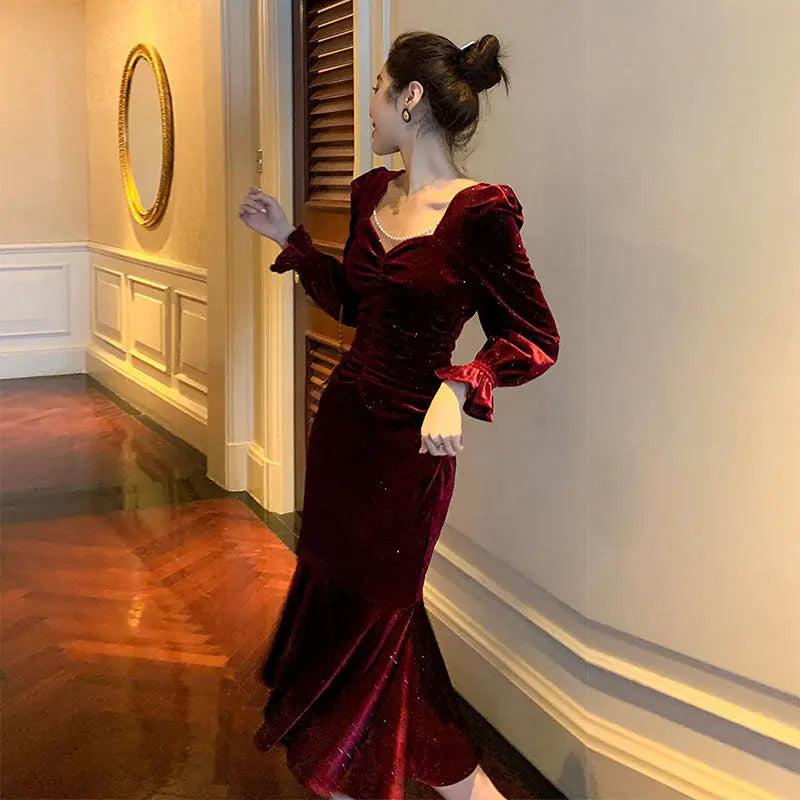 Wine Red Velvet Dress | High-End Autumn Style Sale price$76.95 Regular price$127.95
