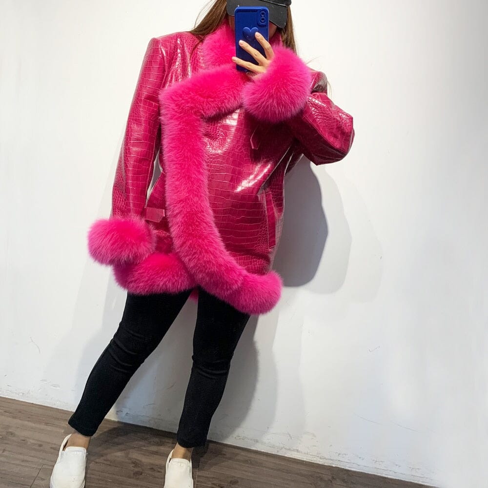 Stay warm and stylish this winter with our Elegant Leather Jacket featuring luxurious fur trim and wide shoulder design. Our high-quality jackets for women include winter jackets, trench coats, wool coats, and down jackets. With a variety of options for women's coats, our collection has something for every fashion-forward individual.