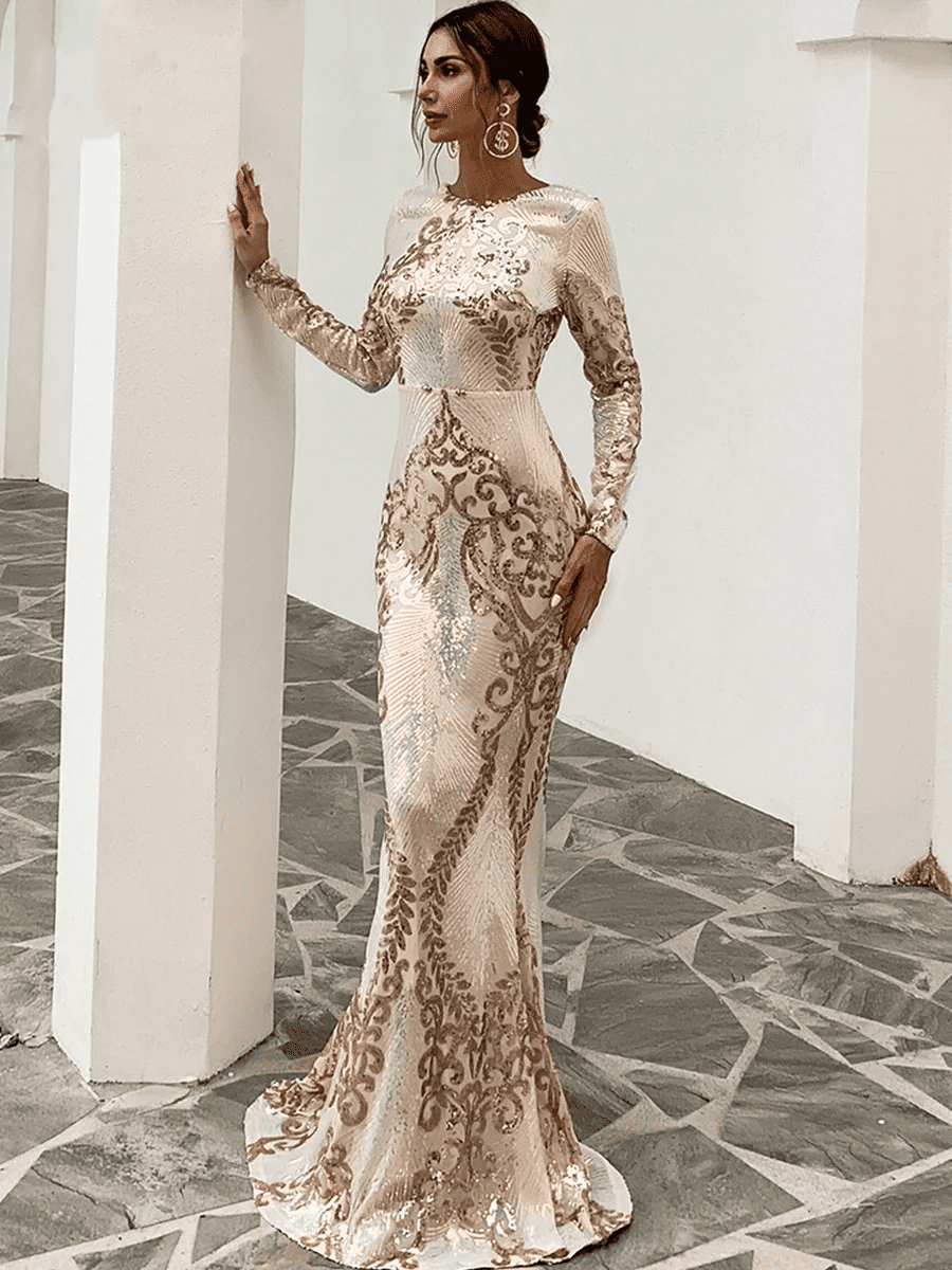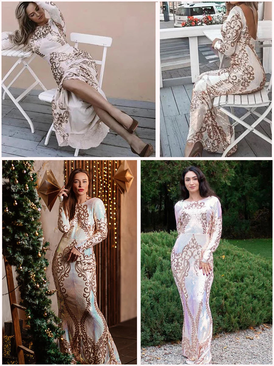 Create a sophisticated look with Missord's Women Sexy O Neck Backless Sequin Long Wedding Dress. Perfect for weddings, formal events, cocktail parties, and more. This bodycon maxi dress will make you stand out in any evening setting. Experience the perfect blend of elegance and style with this stunning dress.