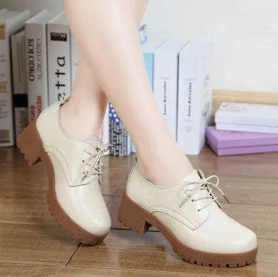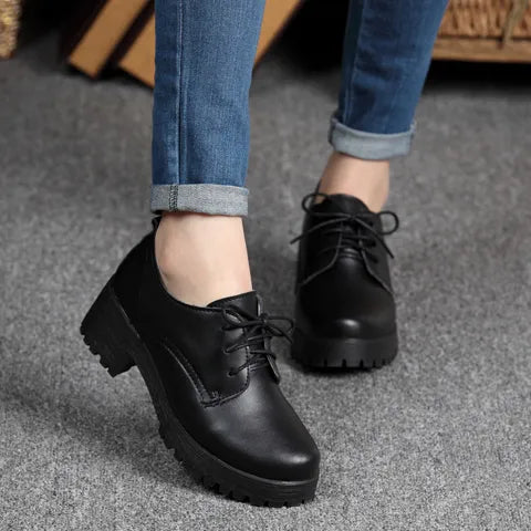 Step up your style game with our Spring/Winter British-style split leather women's flats. These lace-up oxford shoes offer both comfort and elegance with their square heel and platform design. Perfect for both dressy and casual occasions, these leather shoes will be a versatile addition to your wardrobe.