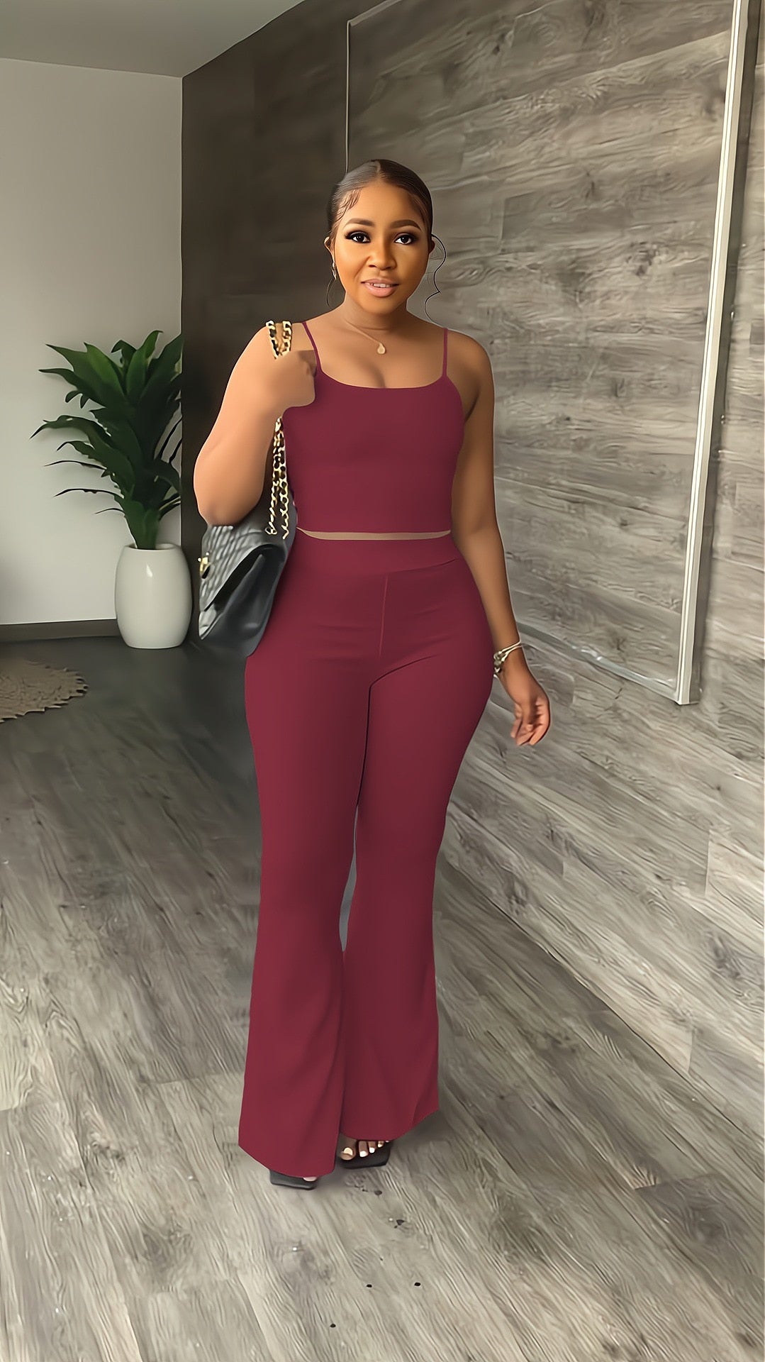 Summer Chic: Two-Piece Pants Set with Crop Top