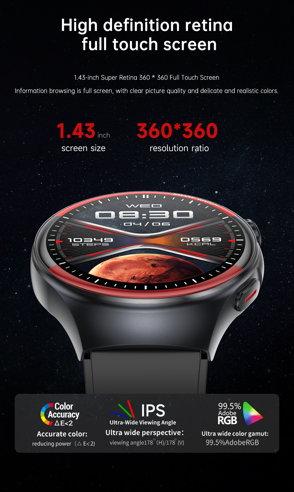 Screen size: 1.43-inch Super Retina 360 * 360 full touch screen