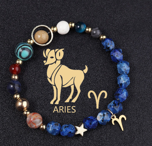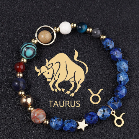 Twelve Constellations Bracelets Natural Stone Cut Surface Hemp Stone Eight Planets Sale price$16.62